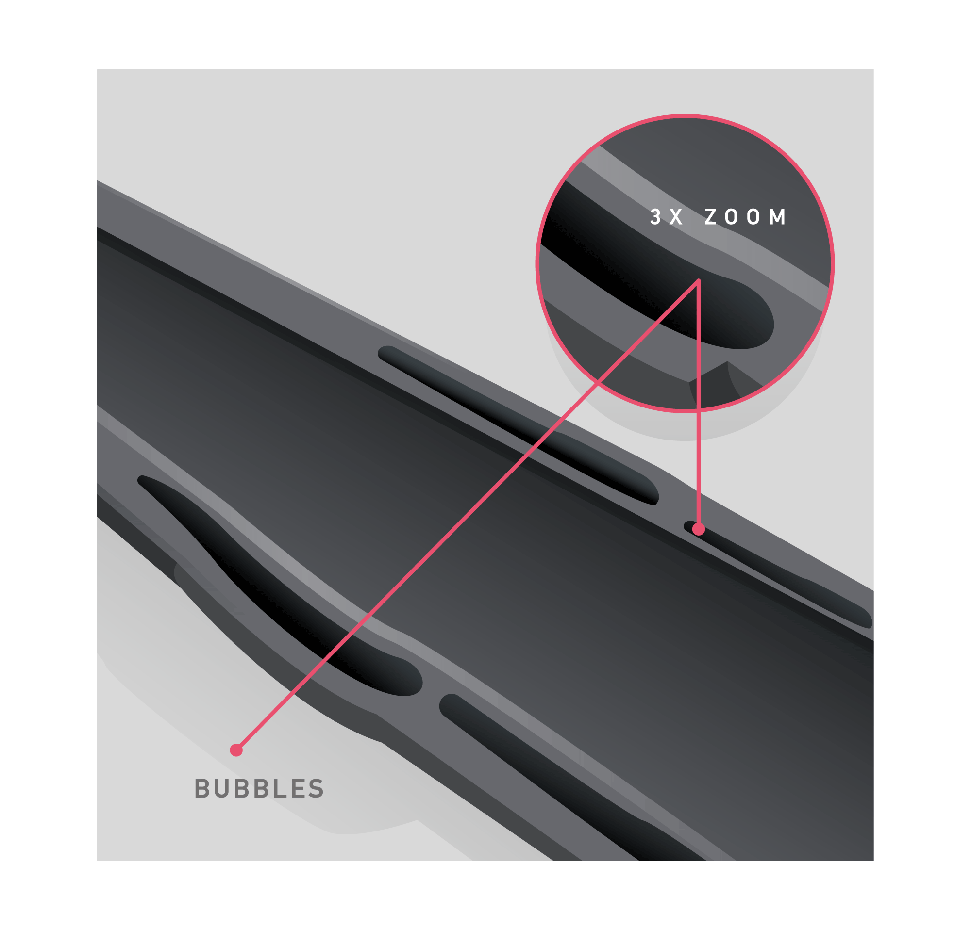 来自产品的水分或气体被注入模腔。这种水分或气体如果嵌入熔体内部,可以表现为气泡。